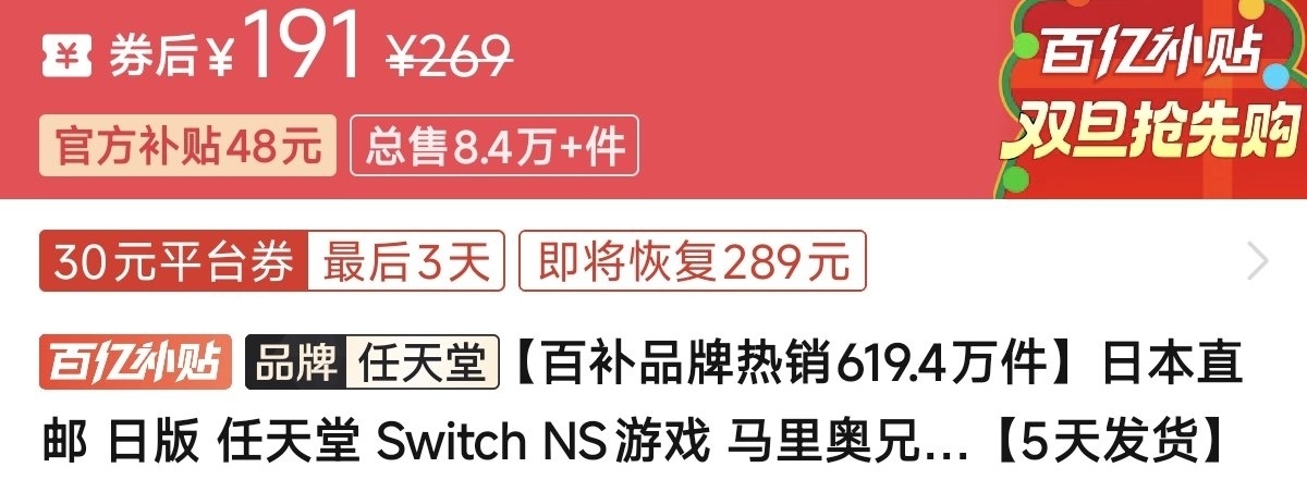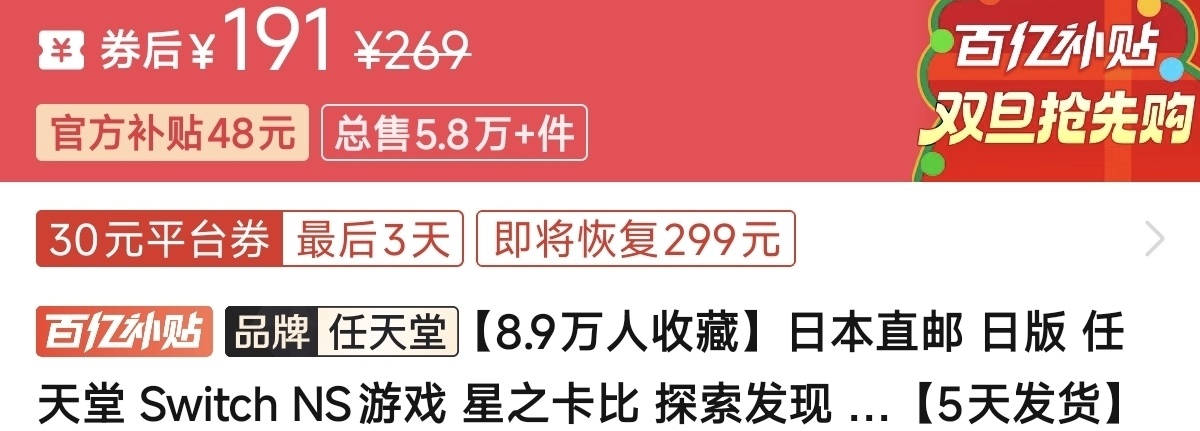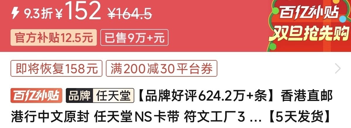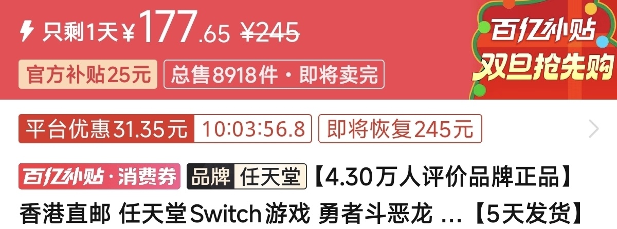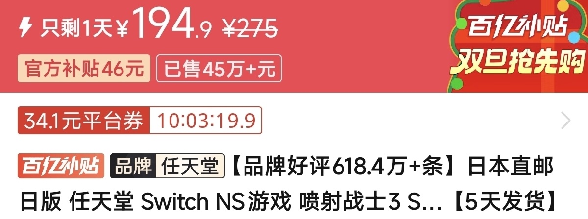 • 本週好價194元(v3專享),不是v3也有好價199元(-30積分券),史低191元(視頻券)