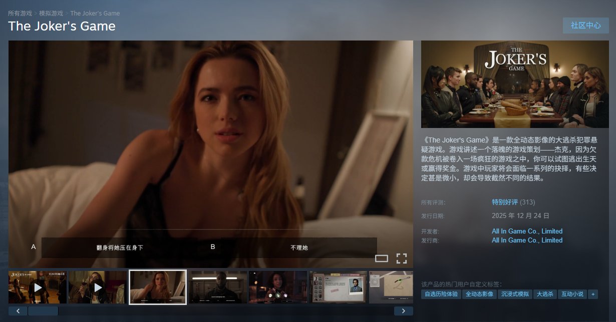 《The Joker's Game》是一款全动态影像的大逃杀犯罪悬疑游戏。游戏讲述一个落魄的游戏策划——杰克,因为欠款危机被卷入一场疯狂的游戏之中,你可以试图逃出生天或赢得奖金。游戏中玩家将会面临一系列的抉择,有些决定甚是微小,却会导致截然不同的结果。