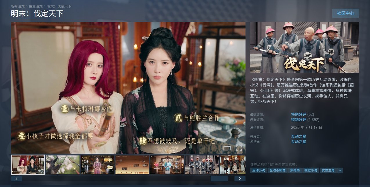 《明末:伐定天下》是全网第一款历史互动影游,改编自小说《伐清》,是万维猫历史影游首作(该系列还包括《绍宋》、《回明》等)沉浸式体验,海量丰富剧情,多种趣味互动。在这里,你将穿越历史长河,携手佳人,并肩兄弟,征战天下!