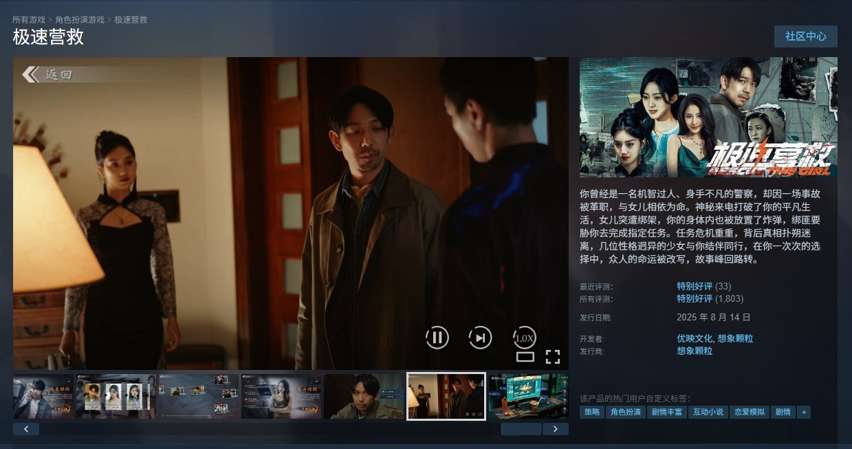 你永远可以相信优映文化的作品,前作毛骗直接封神,本次跟想象颗粒联合发布的极速营救依旧给我带来影视级沉浸式的体验,尤其是打斗场面极具氛围,体验拉满。