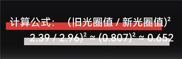 但因为它不是恒定光圈,从 75mm 变到 100mm,光圈会同步从 f2.39 缩小到 f2.96,根据公式:(旧光圈值 / 新光圈值)?、(2.39 / 2.96)? ≈ 0.652,会发现这颗镜头进光量差不多减少了三分之一。