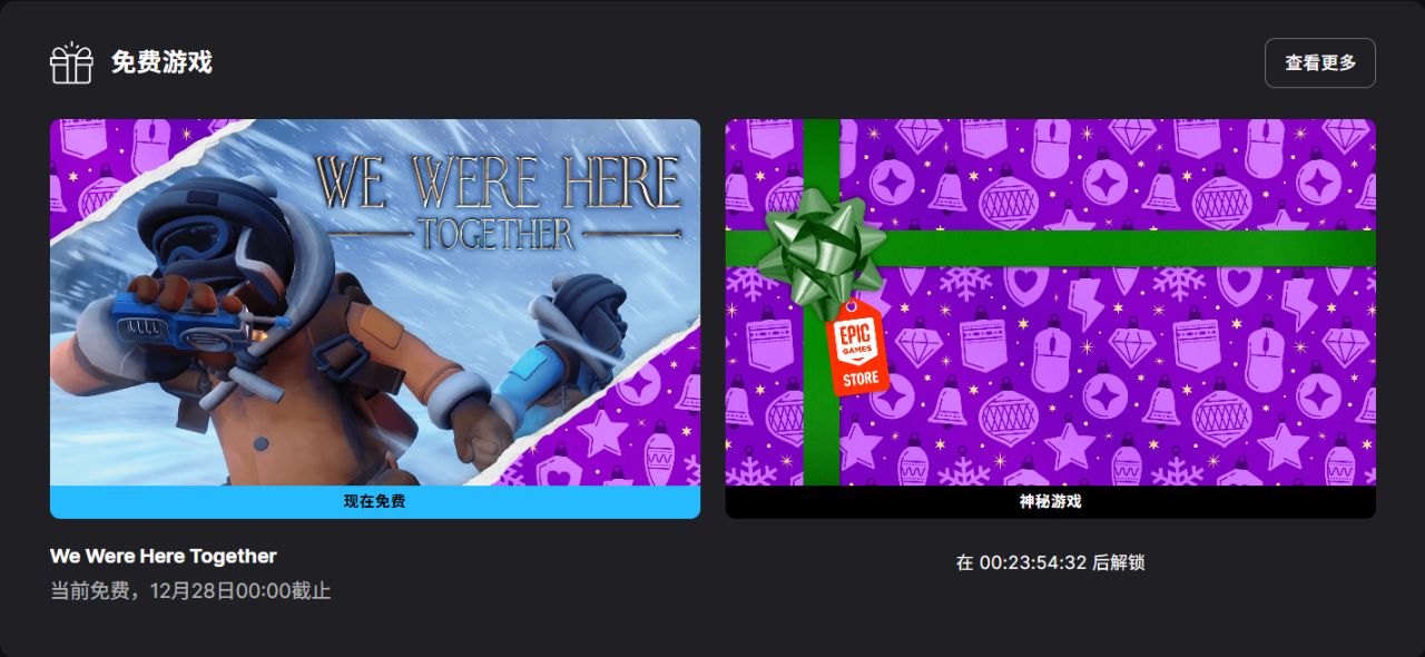 第10款神秘游戏为Steam原价52元的《我们一起在这里》,于北京时间12.27,00:01开始领取,至12.28,00:00截止领取!