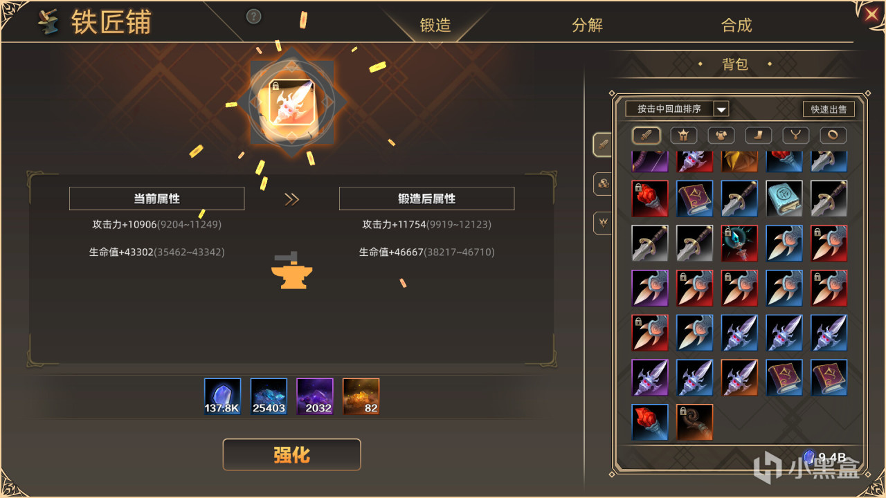 游戏的装备分为不同品质和等级,可通过锻造和镶嵌强化。