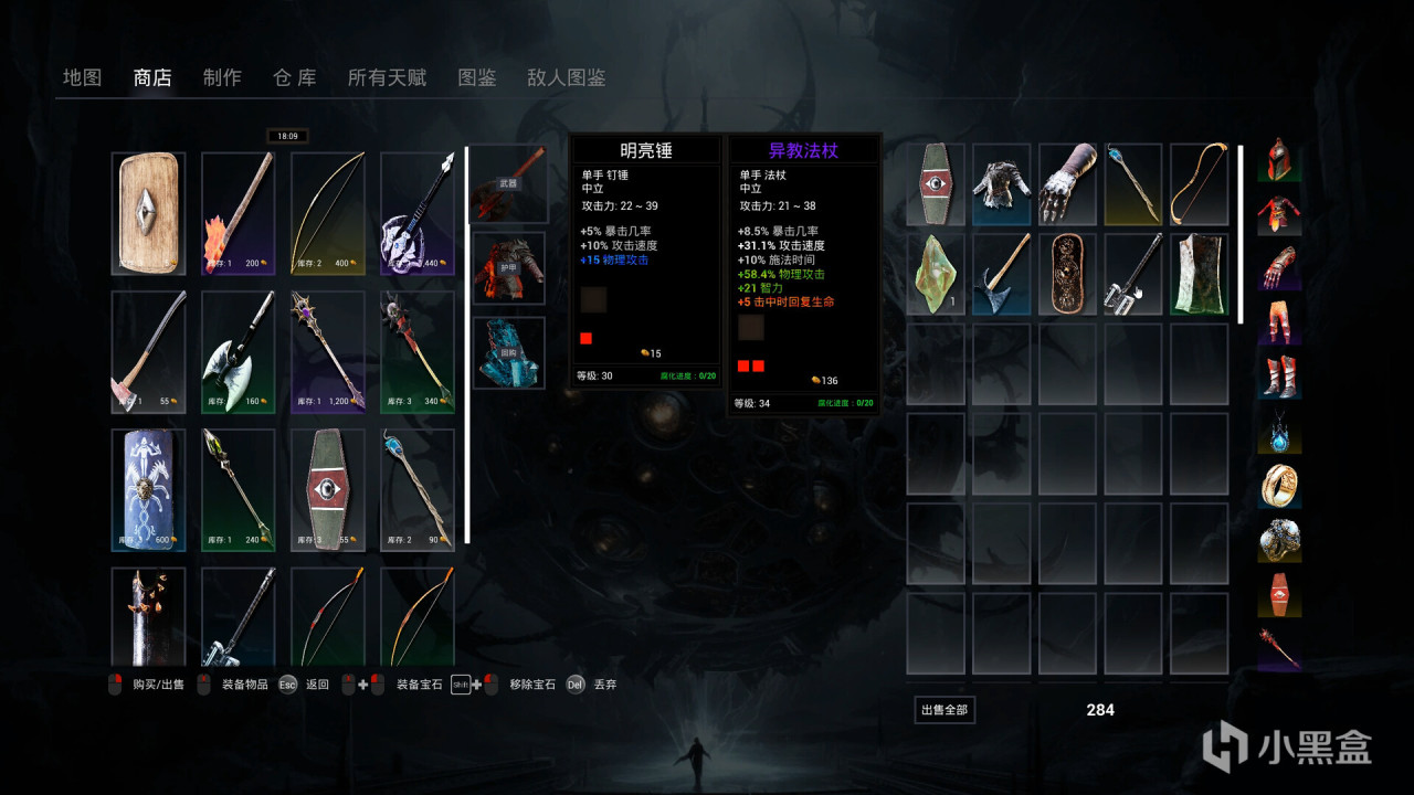 超级多的稀有装备搭配技能孔。稀有程度越高保底词缀越多。同等级装备搭配不一样,随机空间越大。