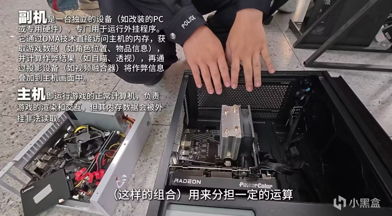 通俗點,外掛就是利用DMA設備的原理,繞過CPU直接進行內存的讀取,然後把這些數據通過視頻融合器套在遊戲畫面上,就產生了“透視”。
