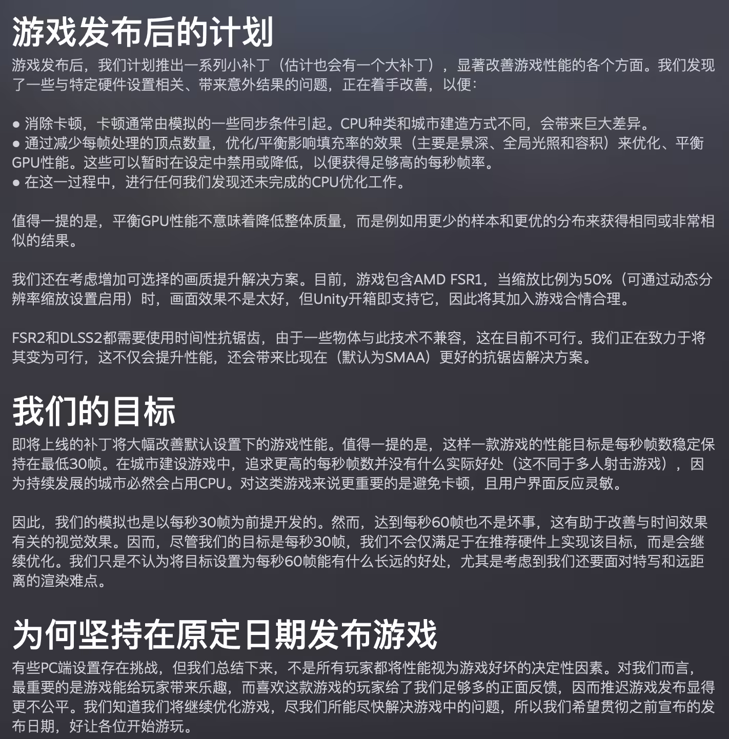《城市:天際線2》發售後遭遇性能問題,是Mod社區率先推出了各種優化Mod,讓遊戲勉強可玩。這些Modder花費數百小時逆向工程遊戲代碼,解決本應由Colossal Order在發售前解決的問題。但他們得不到任何報酬,甚至可能在官方修復後看到自己的Mod“過時”。
