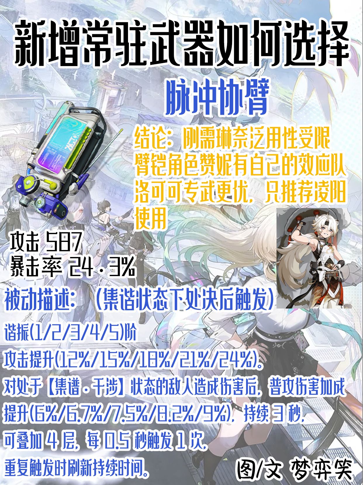其余如果拥有琳奈,推荐源能机锋可以抽取一把,提供给千咲使用,与专武差距在10%以内。