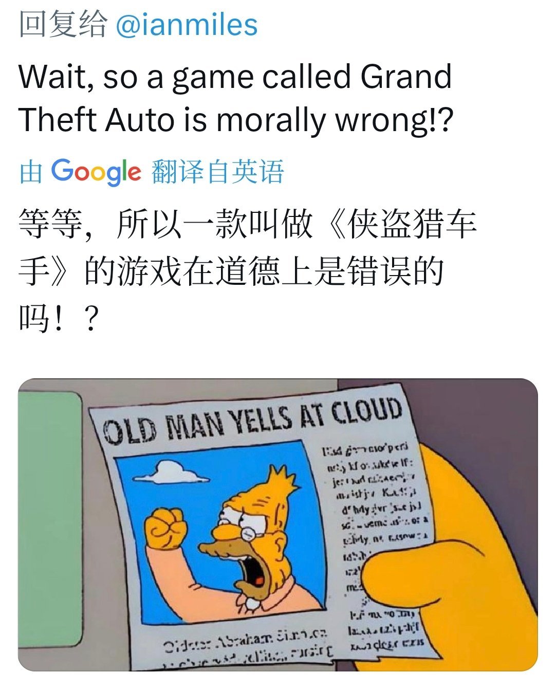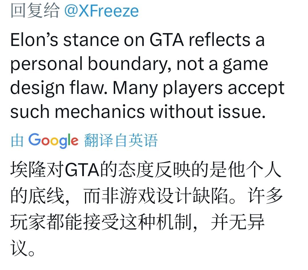 这是马斯克对GTA系列的“老调重弹”。早在2023年GTA6预告发布时,他就发帖称“试过GTA,但不喜欢犯罪,尤其是GTA5开头必须射警察”。2024年3月,他又回复一帖:“我玩不了GTA,即使他们只是NPC,我也不想伤害他们。”