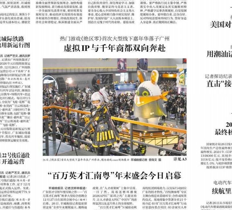 12月26日至28日,米哈游旗下热门游戏《绝区零》凭借首次大型线下嘉年华FES的火爆落地,获得《羊城晚报》全方位聚焦报道——不仅推出整版实体复刻报纸,更连发三期专题视频,深度采访项目负责人并点赞其斩获的PlayStation Partner Awards合作伙伴金奖,成为数字文化与主流媒体跨界联动的典范。