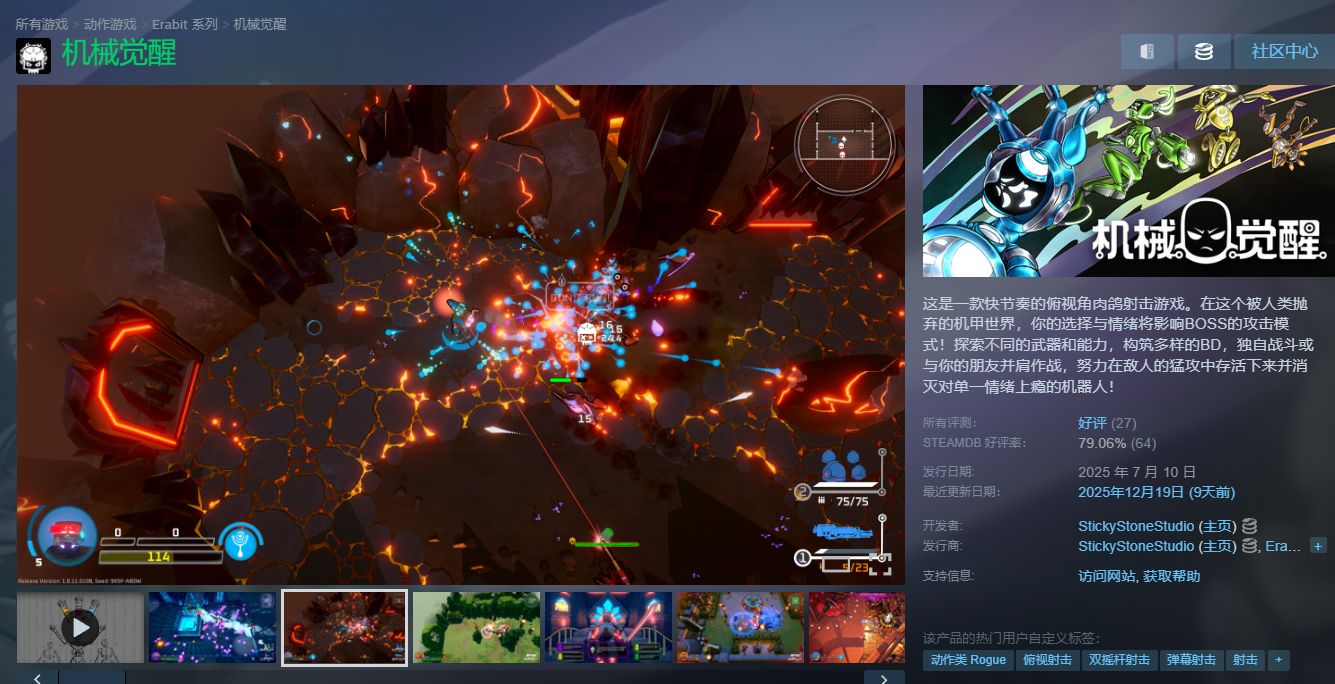 一款俯視角射擊遊戲,帶有一定的肉鴿元素,給我的感覺就像是機器人版本的以撒,當然在玩法和內容上肯定沒有後者豐富,但是依舊有着自身獨特之處,尤其是以情緒代表顏色和能力這點很有趣