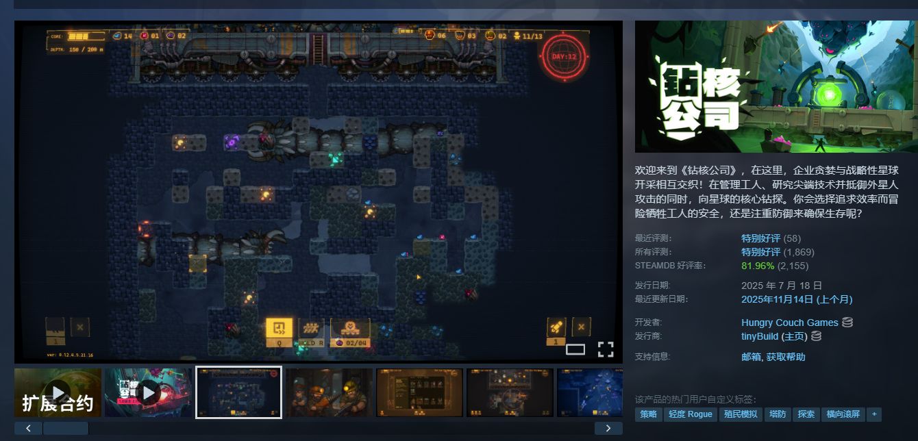 《鑽核公司》這款遊戲,將基地建設、即時指令(挖礦)和塔防策略這三種玩法結合起來製作出的挖礦遊戲,玩法上很新穎,體驗也可圈可點,整體來說算是一款製作不錯、具有特色的精良級獨立遊戲。