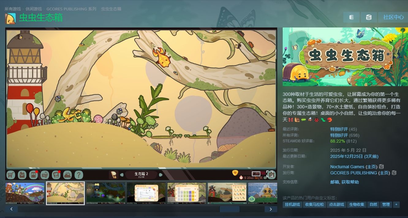 一款由三人獨立遊戲工作室失眠社打造的一款放置類掛機遊戲,不過遊戲可能是考慮到部分玩家接受不了寫實風格的昆蟲圖片,而是採用了比較可愛的畫風,即便是平常看起來有點可怕的鼠婦這類蟲子也變得招人喜歡起來。