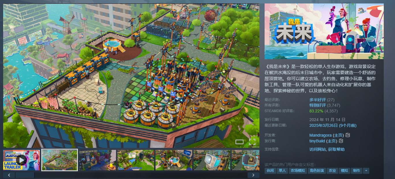一款以末世爲主要題材的生存遊戲。玩家將扮演一位在沉睡中醒來的棕鬍子大叔,在被洪流淹沒的末世城市屋頂進行生存。遊戲畫面用色明亮鮮豔、整體風格輕鬆悠閒,一反末世題材常態,給玩家帶來了新奇而又悠哉的體驗