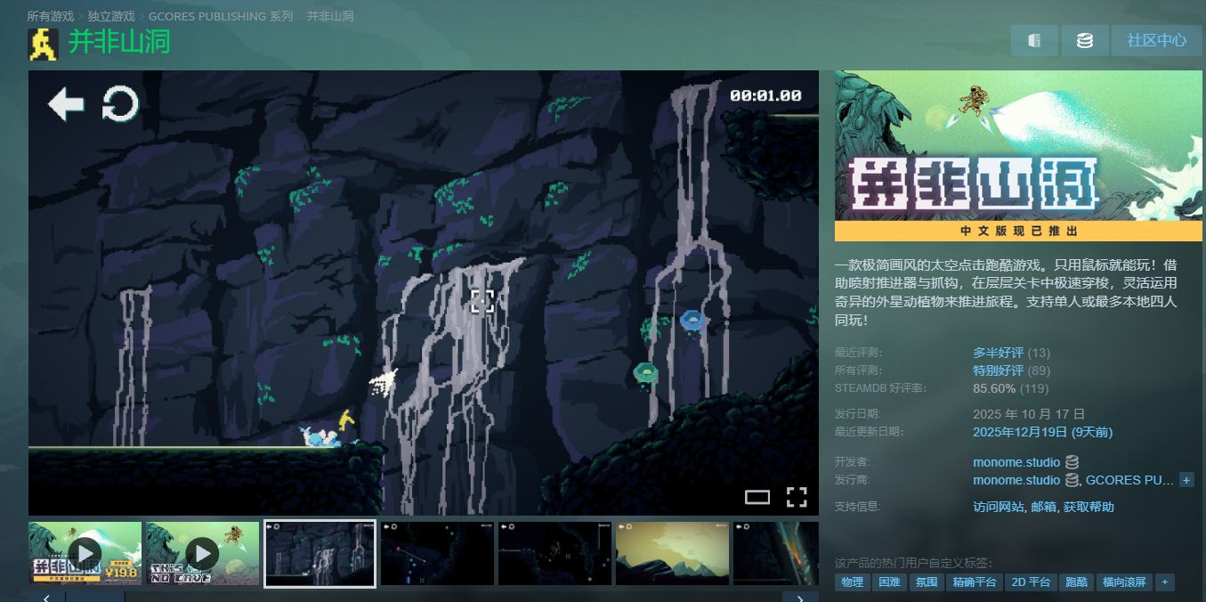 外星清潔工冒險,時長約4小時的休閒體驗,適合喜歡輕鬆探索和可愛畫風的玩家,但對追求深度玩法或敘事突破的玩家吸引力有限。目前超骨折僅需4元~