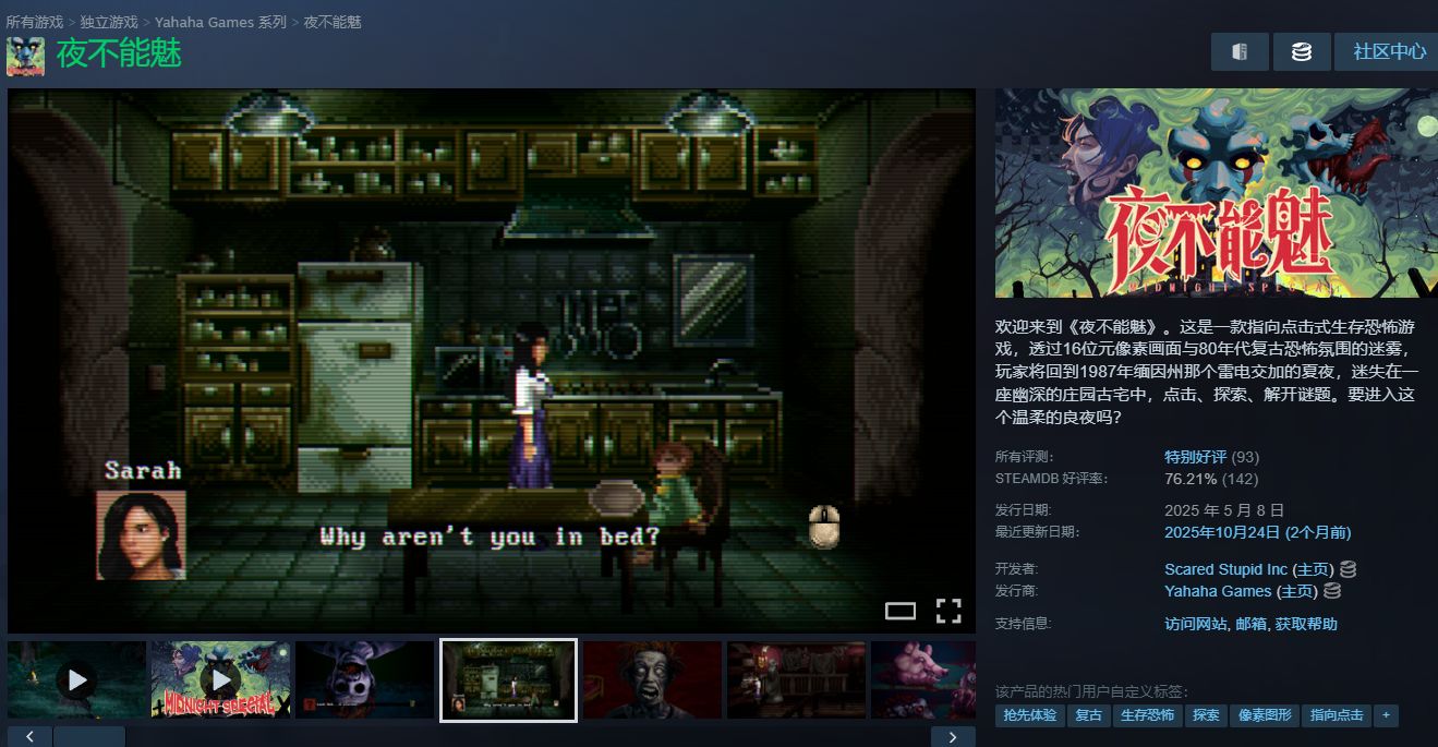 恐怖遊戲與擬真劃等號的今天,《夜不能寐》算得上是一股清流,遊戲不以爛俗的jump scare爲重心,反而是以精緻的像素美術和低沉不安的音樂爲基石,爲玩家打造了一個陰森恐怖的大莊園,深處其中,小心翼翼似乎是必須學會的功課