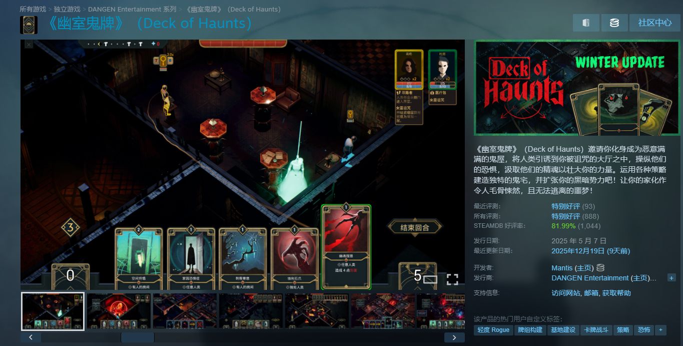 扮演鬼宅本宅去幹掉那些不知死活的訪客們的遊戲,正式版的流程時長爲28天,在這28天裏,玩家需要逐步擴張宅邸,並以各種方式將訪客“留”在,或趕出宅邸。總體來講,遊戲很有趣,很有想法,也具備卡牌遊戲應有的策略性