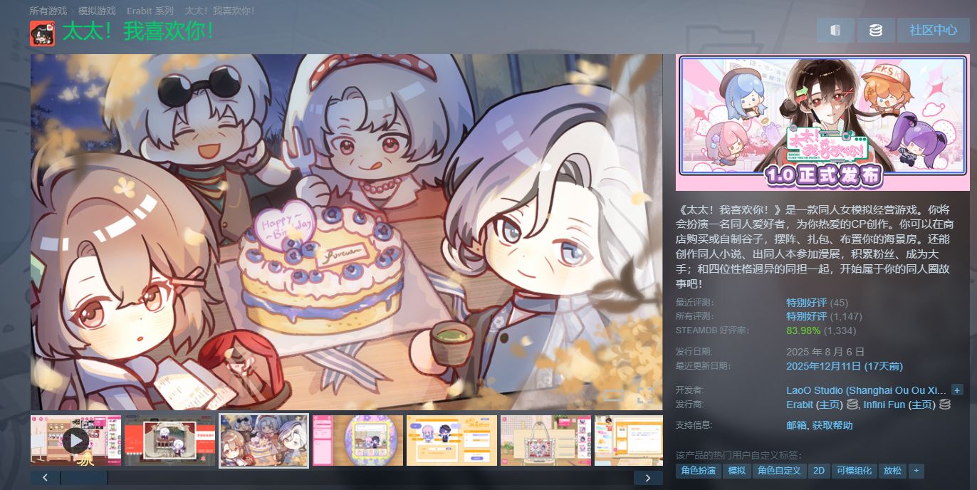 冬促前夕新發售的模擬經營遊戲。畫風可愛,可以養很多動物~