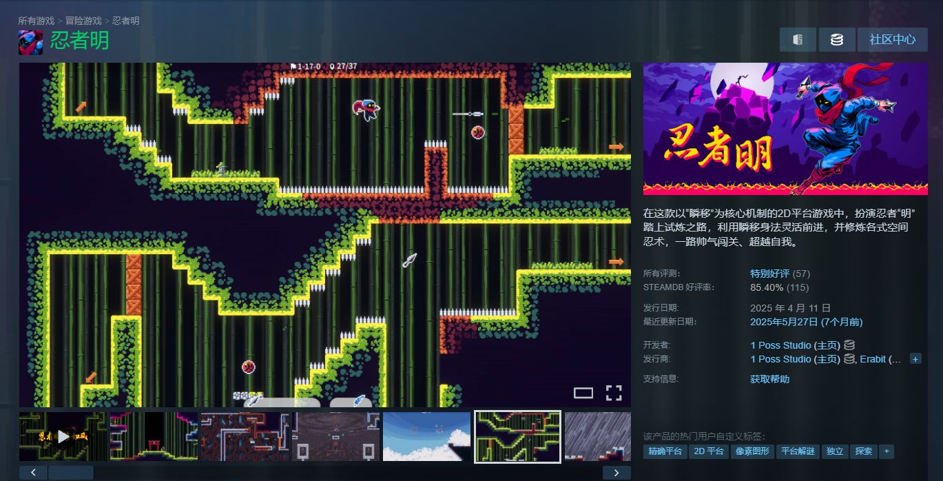 按房間挑戰,需要極其精準拿捏時間,完成華麗的多段空中跳躍挑戰。 手感絲滑,難度頗高,很有成就感。 復活沒有延遲,挫敗感溫和很多。有大量收集要素和挑戰成就。