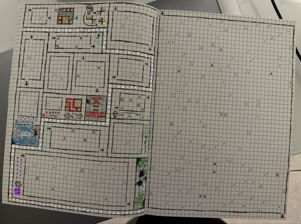 只有一張圖的一份猜規則紙筆謎題集,玩家需要在解決左邊一頁的衆多小題的同時猜想規則,而右邊一頁則是需要運用到所有規則的超級大盤。如果你有一些相關題型的經驗,規則可能會更加好猜一點,但本作的猜規則確實是相對比較難,線索有點過於少了,還有文字解碼成分,所以這方面我個人其實體驗並不太好。