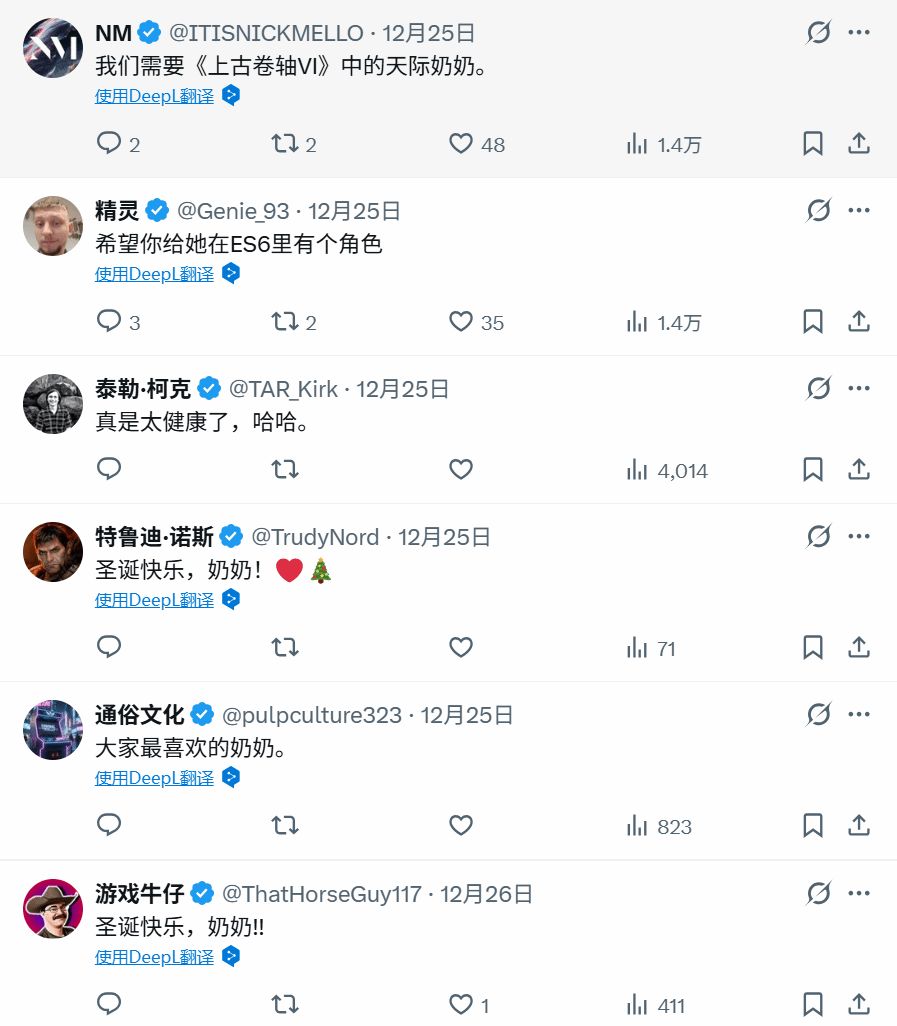 近年来,Shirley的上传频率有所下降。2025年初,她在一次视频中提到自己“感到疲劳”,主要是因为年龄和健康原因,导致《天际》相关内容减少。她转向了一些更轻松的主题,比如阅读和生活分享。但这并没有让她完全离开社区。就在圣诞节前夕,她在自己的YouTube频道发布了一段介绍绘本的视频,视频中她穿着节日服装,精神看起来相当不错,声音洪亮,笑容满面。这段视频被视为她“复出”的信号,粉丝们纷纷留言表达欣慰,比如“奶奶看起来好精神,继续加油!”这也为她在《上古卷轴》官推上的节日问候铺平了道路。
