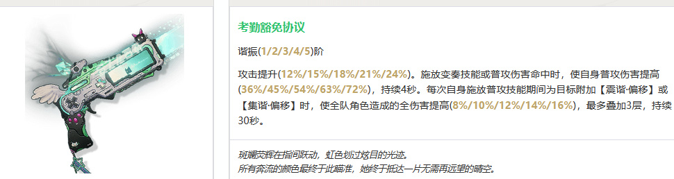 首選自然是專武溢彩熒輝,攻擊提升普攻提升偏諧後全隊加成,抽一把就是常駐24%全傷害提升,最關鍵這把槍會喵喵叫耶。次選可以整咱們新的五星常駐配槍,主打一個高面板提升和偏諧後自拐。