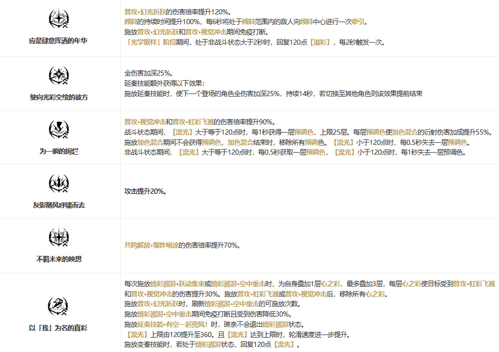 1鏈蹦噠三下的強化跳躍攻擊傷害倍率提升120%,提升強化普攻後留下顏料的保存時間,並每六秒進行一次聚怪,這兩套操作優化手感免疫打斷,最有意思的是咱們脫戰兩秒後直接開啓輪滑鞋模式,這纔是咱們琳奈嘛。