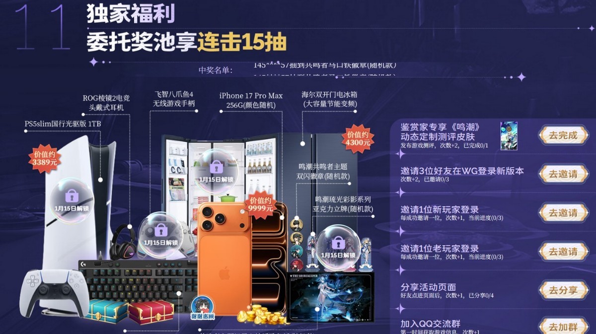 現在用WeGame玩鳴潮開啓新版本福利活動,平臺獨家暴擊Q幣648,還有年度回饋任務和連續十天每日大送超豐厚Q幣,作爲全網唯一一家Q幣充值入口平臺,白嫖的Q幣當場就能充鳴潮,每日補貨先到先得。不僅有Q幣,只要您來,還有iPhone手機雙開門冰箱等大獎等您帶回家嘍~