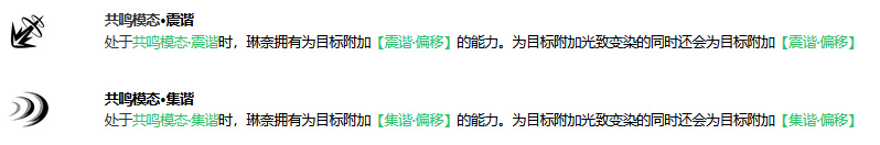 在討論琳奈的機制之前,咱們需要先了解一下琳奈被叫做投資未來的核心原因,也就是偏諧機制在琳奈身上對我們玩法的影響,簡單來說偏諧就是傳統處決玩法上玩出了花,處決一般就是打到一定的失衡條可以進行的額外高傷害打擊,偏諧則是給敵人掛上兩種可選方向的debuff,在給敵人掛上buff後再進行處決會有額外效果,倆效果一個叫震擊一個叫集諧,前者是處決後追加一次高傷後者是有偏諧模塊的角色對其造成的最終傷害提升,偏諧攻擊後只有偏諧模塊角色能喫到的增傷即偏諧易傷。當然,咱們現在新體系並不完善,選集諧也沒人能補傷害所以當前的琳奈選擇震諧更好一些,差不多能把處決傷害從無增傷狀態下的6w提升到10w記得在角色技能界面進行調整捏