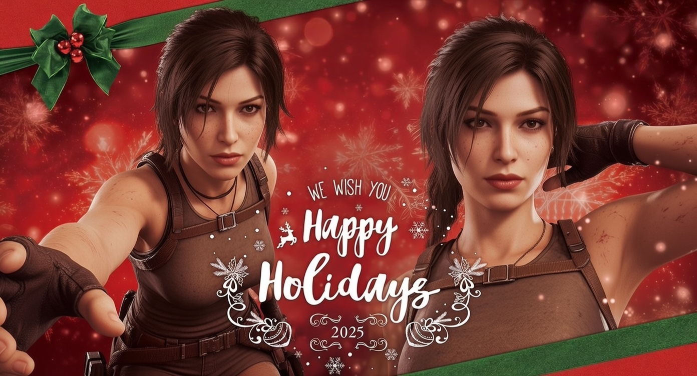 ↓↓↓ 用X 图片一键AI编辑功能修改后的圣诞贺图(角色改为劳拉)。
