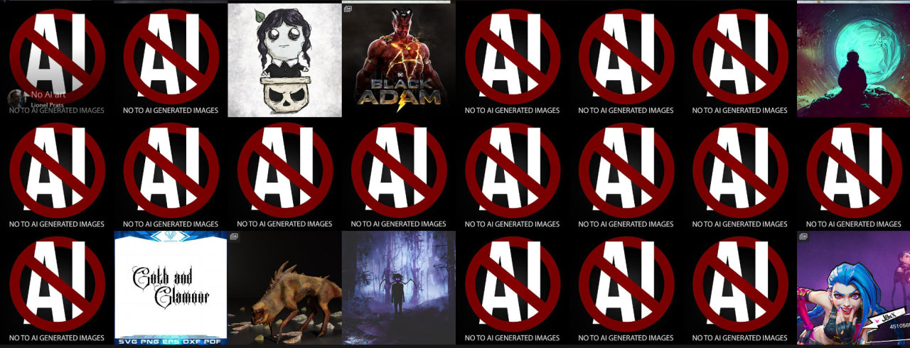更早的,2022年,A站数千位艺术家自主发起AI作品抵制活动,拒绝AI生成图像。