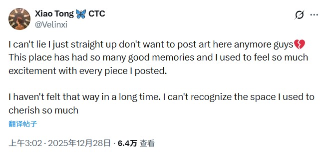 目前这项新功能已经引发大量画师声讨,有不少画师宣布不再使用X(推特)。