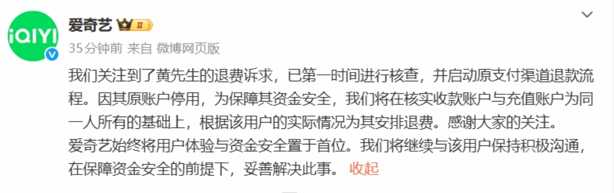 黄先生表示:“再怎么喜欢爱奇艺也不可能充20多年会员,房贷才30年”。 他发现后联系客服申请退费,但被告知只能原路退回至原支付账户,而该支付宝账户已停用并被他人注册。12月28日,爱奇艺官方回应称,已关注到黄先生的退费诉求,并启动退款流程。由于原账户停用,为保障资金安全,平台将在核实账户归属后为用户安排退费。