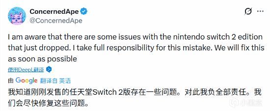 此次Switch 2版的上线堪称猝不及防——此前埃里克·巴隆仅确认版本将于2025年秋季推出,未公布具体日期,最终由知名消息人士Wario64率先曝光上线信息。版本支持初代Switch玩家免费升级,新玩家购买价为14.99美元(约合人民币105元),且升级流程仅能在Switch 2主机上直接操作,PC端eShop无法搜索到相关选项。面对玩家的集中吐槽,埃里克·巴隆迅速在社交平台发布声明:“我已了解到刚推出的任天堂Switch 2版存在一些问题。我为此次失误负全部责任,我们会尽快完成修复。” 这份态度诚恳的回应虽缓解了部分玩家的不满,但核心问题的解决仍需等待补丁落地。