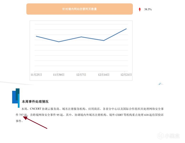 另外结合国家互联网应急中心的报告,上周的网络安全事件激增,高达757起。此前大概20-400/每周。根据目前12月发生的网络安全事故,不知道在明年2月份时,会不会出现大规模事件。