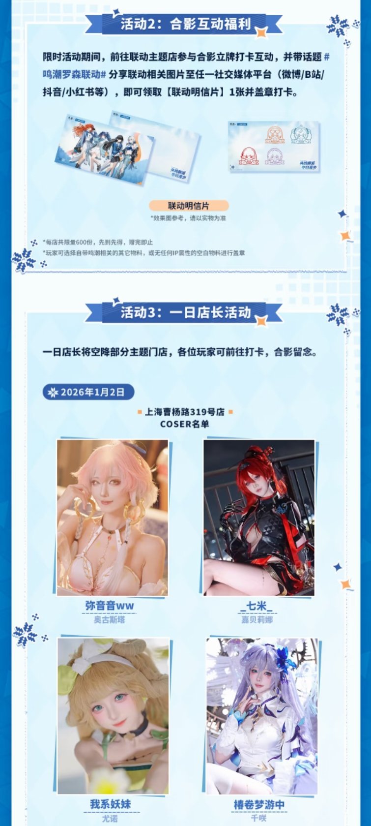 2026年1月2日-2026年1月3日主题店活动期间,来店更有机会体验消费满额抽奖,打卡互动福利,一日店长活动哦