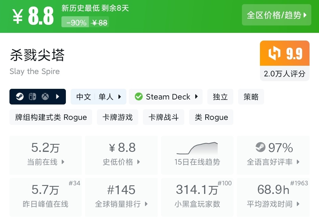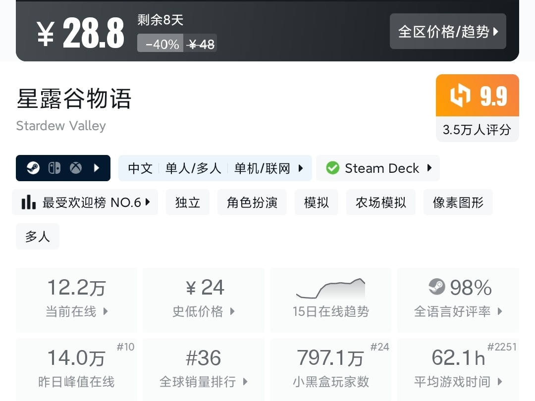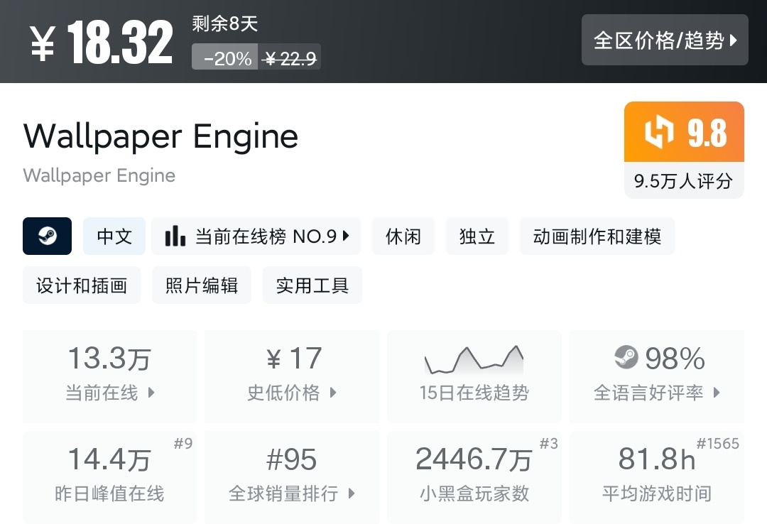 永漲後的最低價格。也算是史低了。steam必備軟件之一。