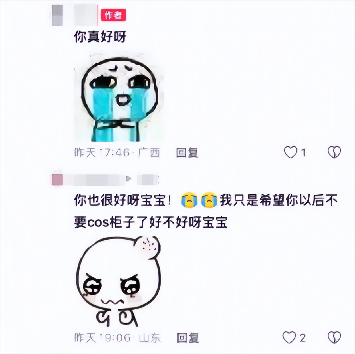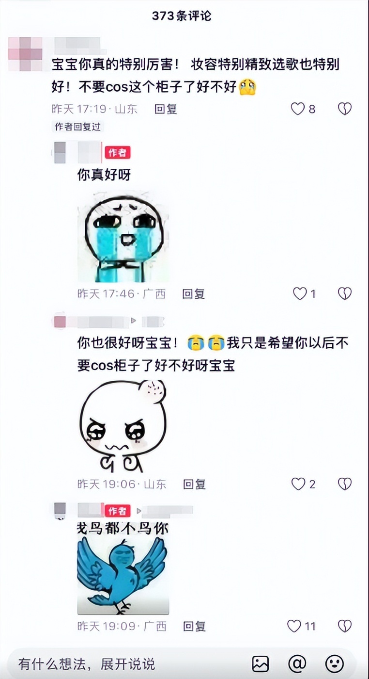 但這位博主,卻是個戰術天才。他先是發了一句“你真好呀”,表示對評論區意見的接納,顯得無比虛心聽勸,讓屏幕那頭的交流者產生一種孺子可教的成就感,繼續以“你也很好呀寶寶”之類的鼓勵來回應。