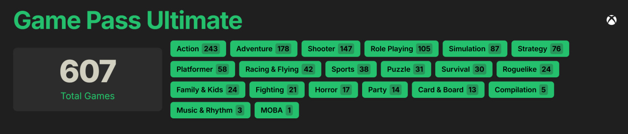 在这一年里充分挖掘 XGP会员库的资源价值,累计体验了 42 款多个品类不同类型的优质游戏。最终成功达成了 25 款游戏的全成就目标,全成就率约为 60%。