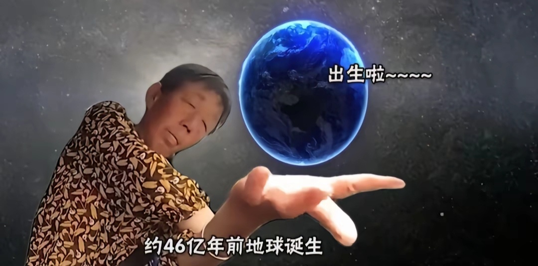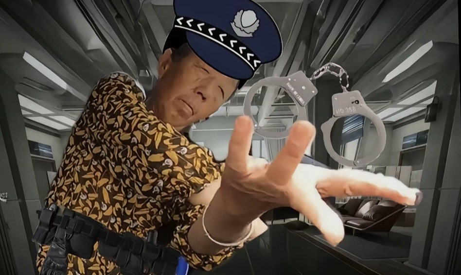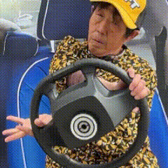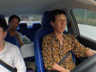 聽到這句指令的奶奶想打方向盤掉頭,可能不知道打方向可以倒手,便以這樣極其變扭的姿勢執行這項指令。於是這張抽象的圖片便誕生了。
