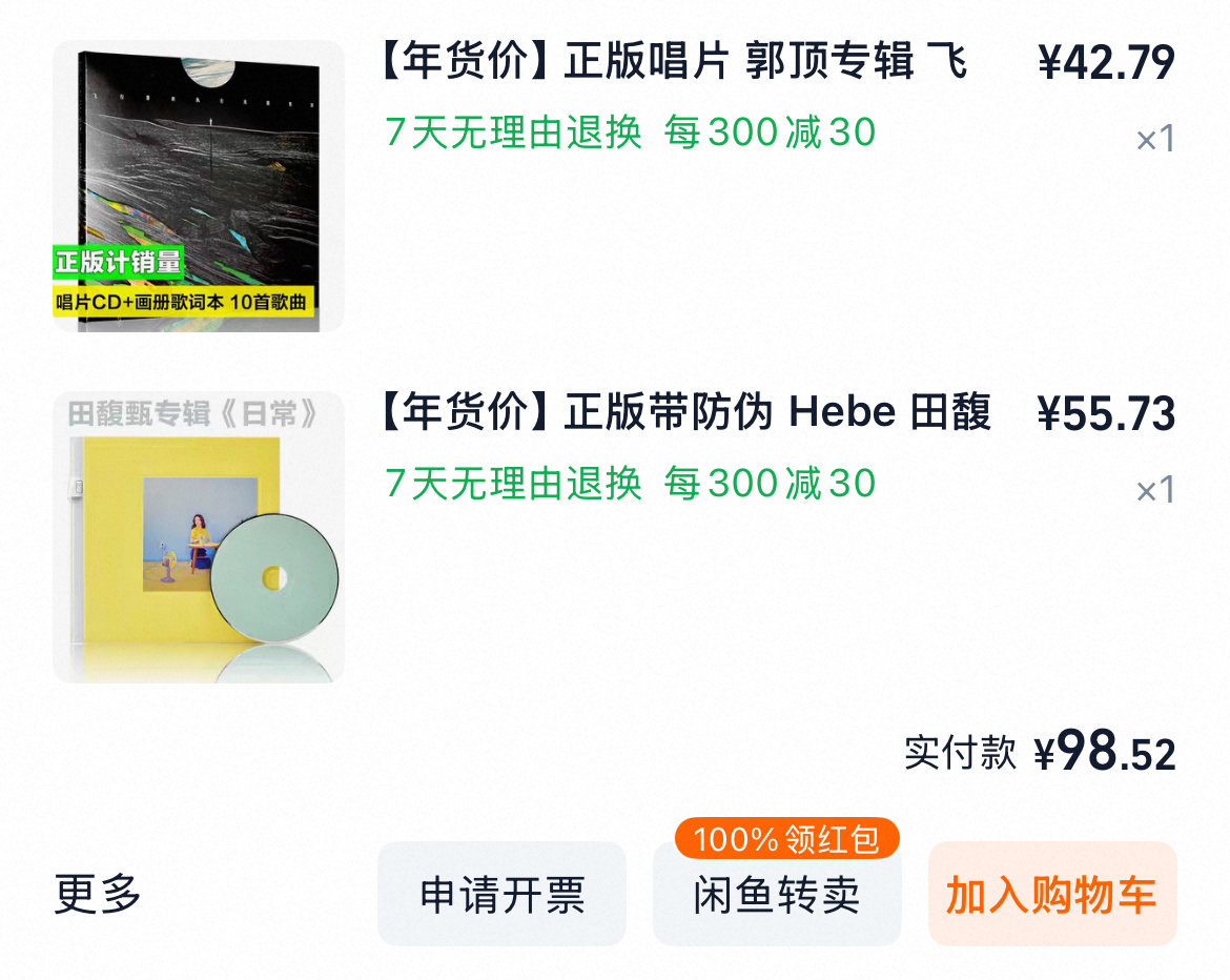 當時CD非常便宜,國內的普遍50元左右,熱門的和國外的貴點也不超過100元,2022年後CD隨着演唱會一起漲價,現在專輯基本上沒有低於100元的了。