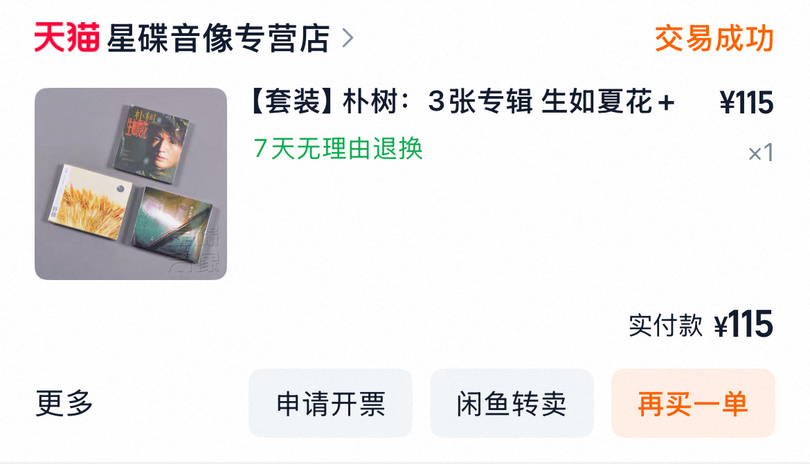 朴樹的歌是不錯的,但是不符合自己的口味。當時追的妹子瘋狂迷戀朴樹,全國跟巡演場場不落那種。爲了增加話題買了全套CD,可惜根本聽不進去,現在查了查專輯貌似都漲了不少,屬於是理財了。