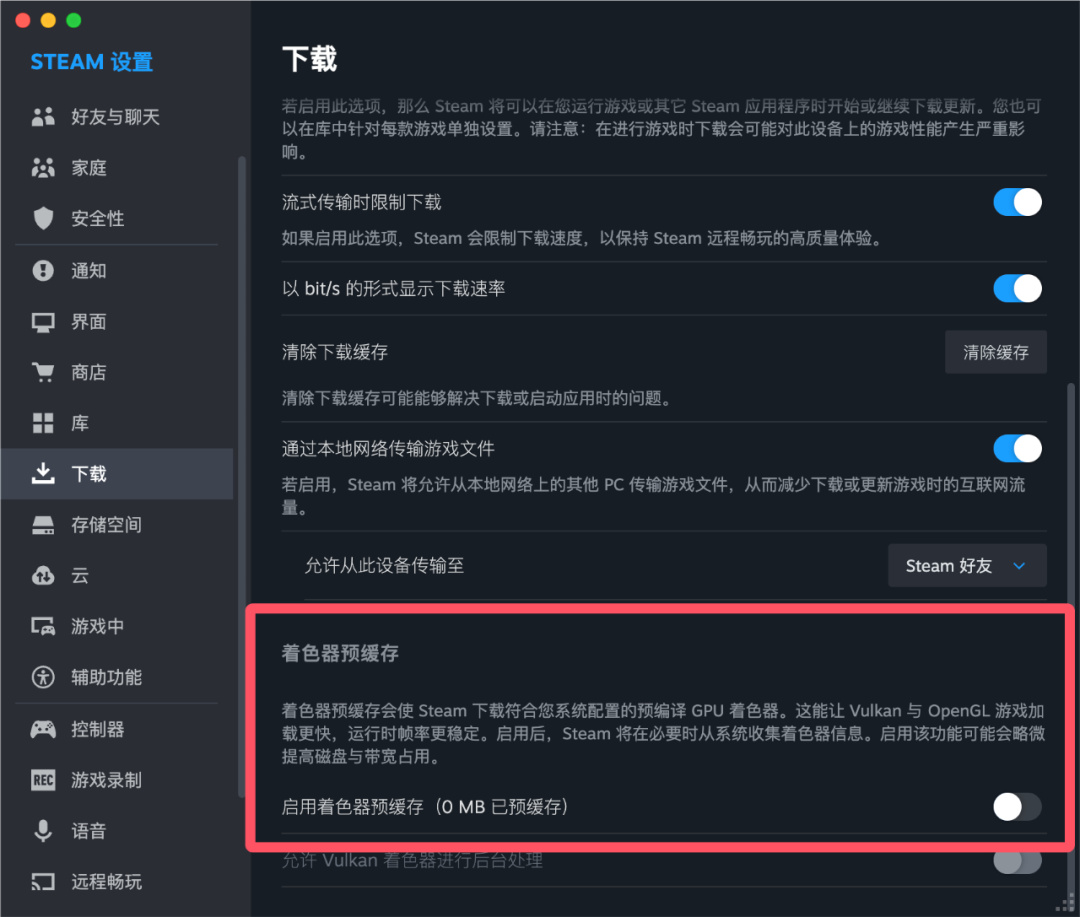 举个例子,你可能在Steam设置里见过“下载 - 着色器预缓存”的功能,不知道有什么用。