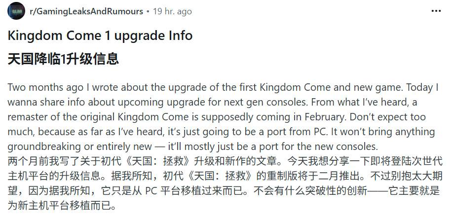 近期,曾准确预测续作延期的业内消息人士bertik11透露了该项目细节。他表示复刻版基于现有PC版本开发,技术升级幅度可能相对有限:"请勿过度期待。据我所知,这本质上是PC版的直接移植,不会带来突破性内容或全新要素——主要是针对当代主机的适配。"