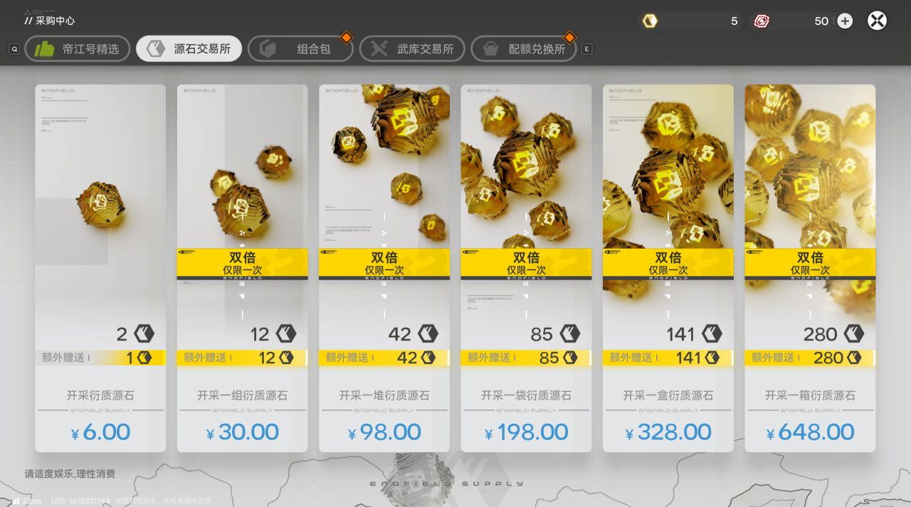 6元首充給6源石相當於8.57一抽。