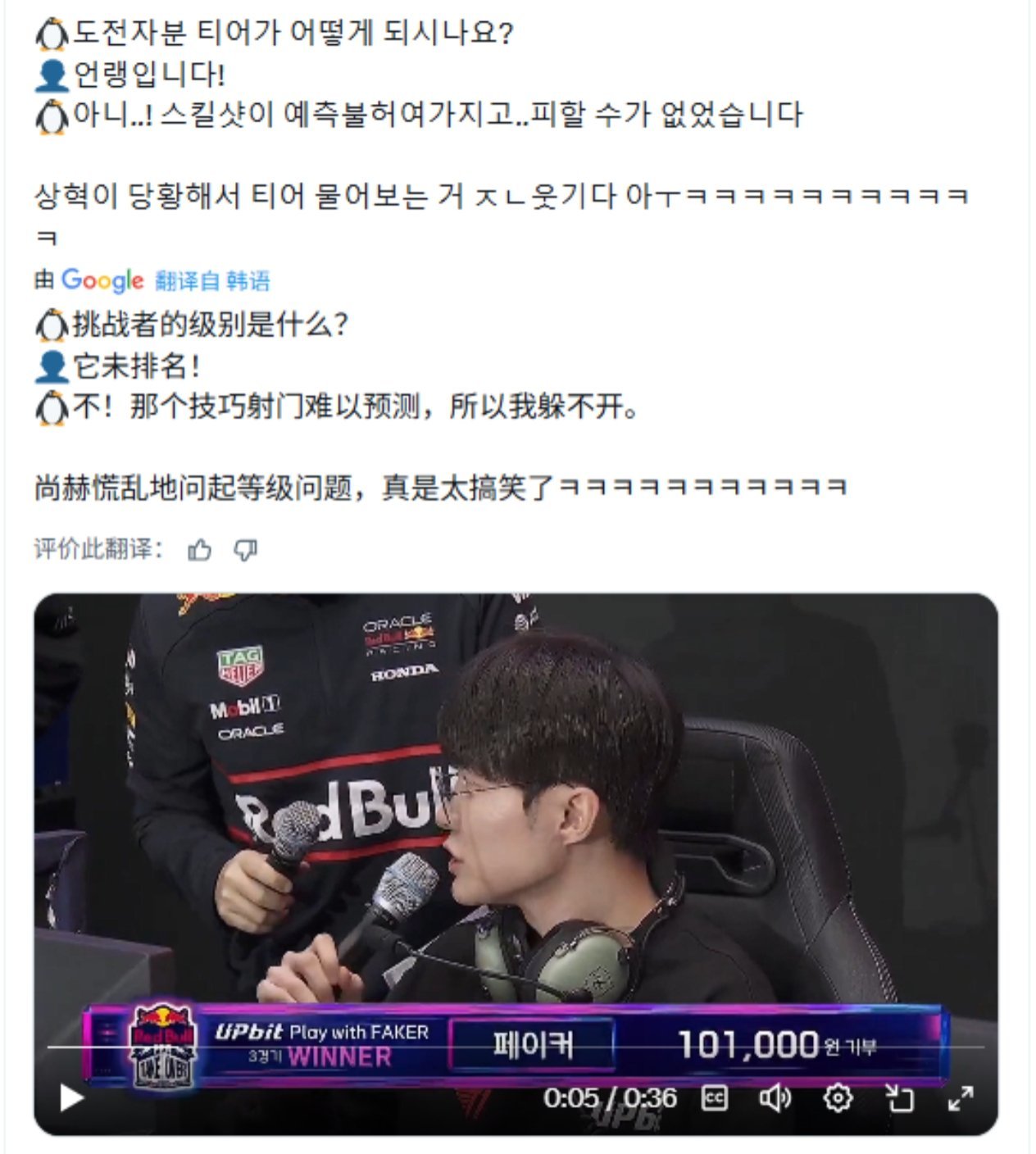 Faker赛后坦言完全无法预测对手行动,“我完全无法预判对手的下一步动作…所以躲不开”。他一度询问对方是否为“铁牌”段位玩家,却得知这位女粉丝连排位赛都未曾参与,是纯粹的新手玩家,这场对决完美诠释了“乱拳打死老师傅”。