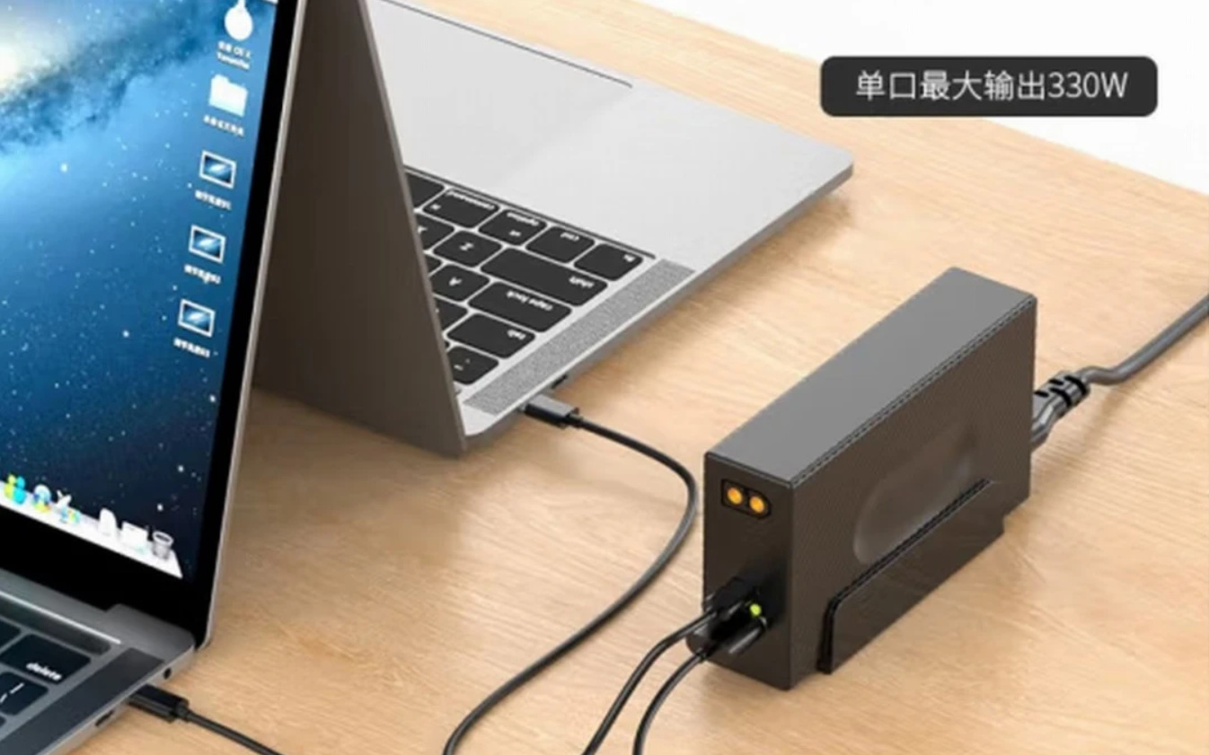 笔记本倒是常见,支持快充的用氮化镓充电头补能,再或者像安述推出的能为显卡扩展坞供电的氮化镓笔记本充电器,和游戏本大砖头稳压器类似的形状,但体积较传统缩小了不少。