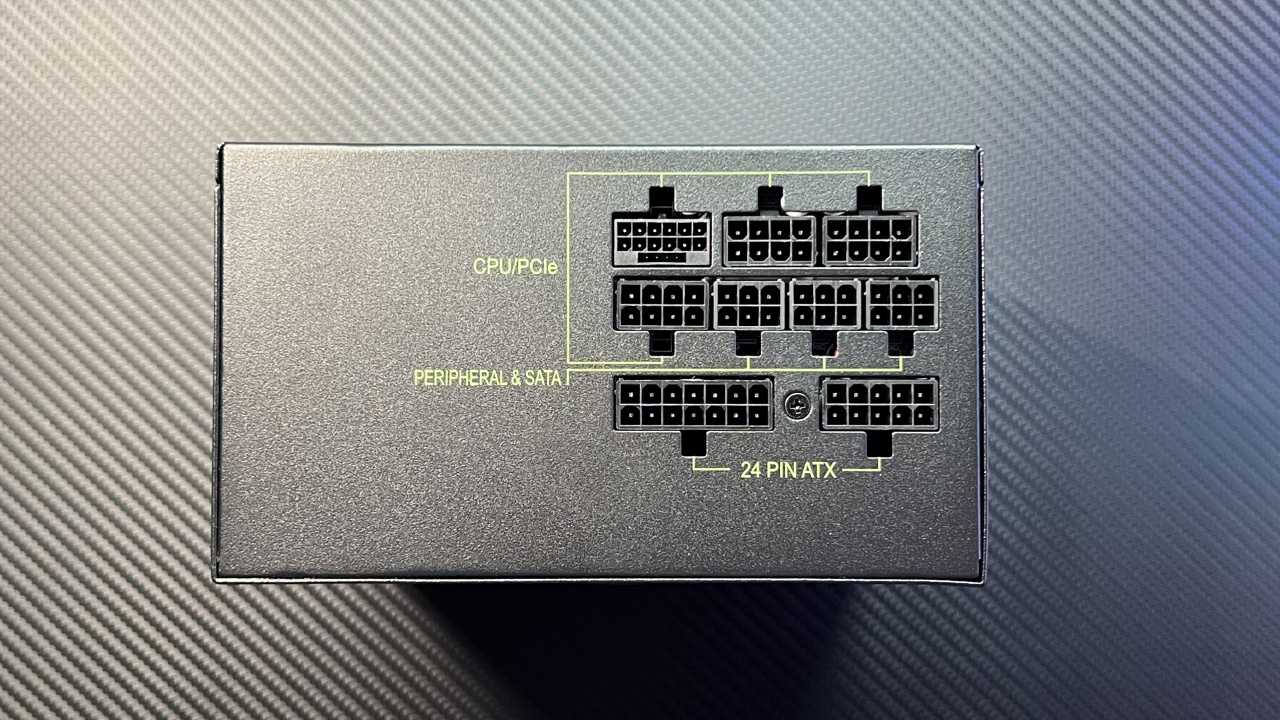 模组接口方面,一组接主板的24pin接口,一组支持最新PCIe5.1 16pin接口、三组8pin CPU及显卡PCIe接口以及三组6pin的SATA接口。