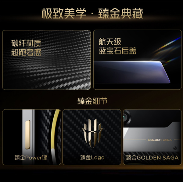 据了解,红魔11 Pro+ GOLDEN SAGA发布于今年10月,机身采用碳纤维材质,中框为镜面银,并配备蓝宝石后盖,提供24GB+1TB存储组合,同时内置镀金VC、金&银风道,以及行业首款流金水冷散热。