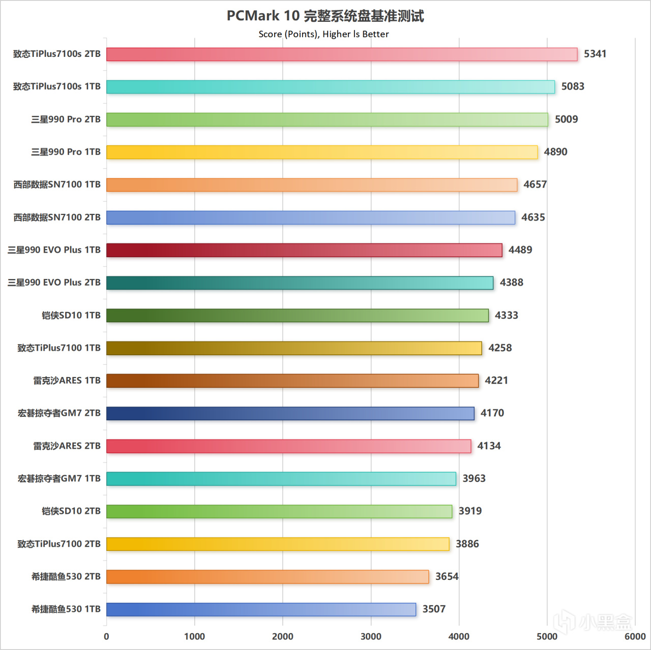 为了量化SSD作为系统盘时的性能表现,我们使用PCMark 10的完整系统盘基准测试功能,通过模拟23项使用场景,来评估SSD在日常使用场景中的综合表现。