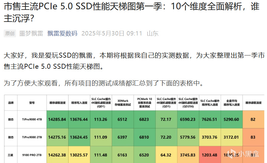 但在今年年初,我将测试平台的处理器更换为Intel i9-14900K后,由于硬件环境变量发生了变化,此前积累的数据已经不再适合直接拿来与新平台的测试结果横向比较,所以只是在年中重新测试并制作了PCIe 5.0 SSD的天梯图。